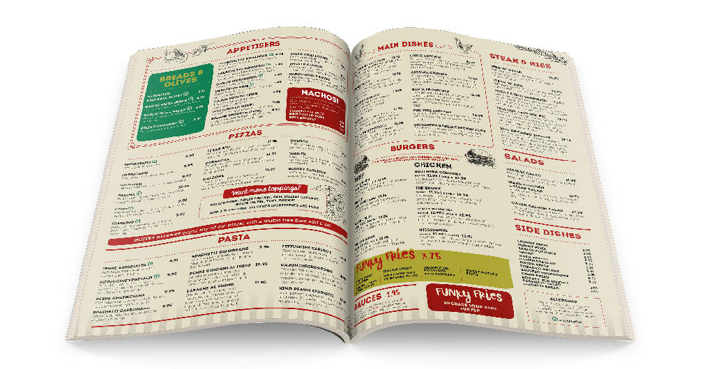 I was tasked with the conceptual logo and main brand design, this was then applied through the menu design, table menus, drinks menus, social media profile, signage and much more.